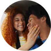 A search bar says 'Fun date ideas' with flowers, a meal, a map, and a couple laughing behind it.